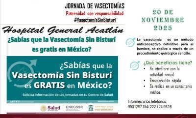 Brisselda Sarabia ACATLÁN DE OSORIO, Pue.-Este 20 de noviembre se llevará a cabo una jornada gratuita de vasectomías en el Hospital General de Acatlán de Osorio,...