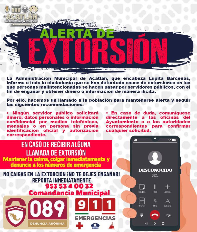 Recientemente, en Acatlán de Osorio, se han registrado llamadas en las que los delincuentes simulan tener vigilados a familiares, domicilios o negocios, exigiendo dinero a cambio de no causarles daño. Para incrementar la presión, los responsables se hacen pasar por miembros de un grupo delictivo.