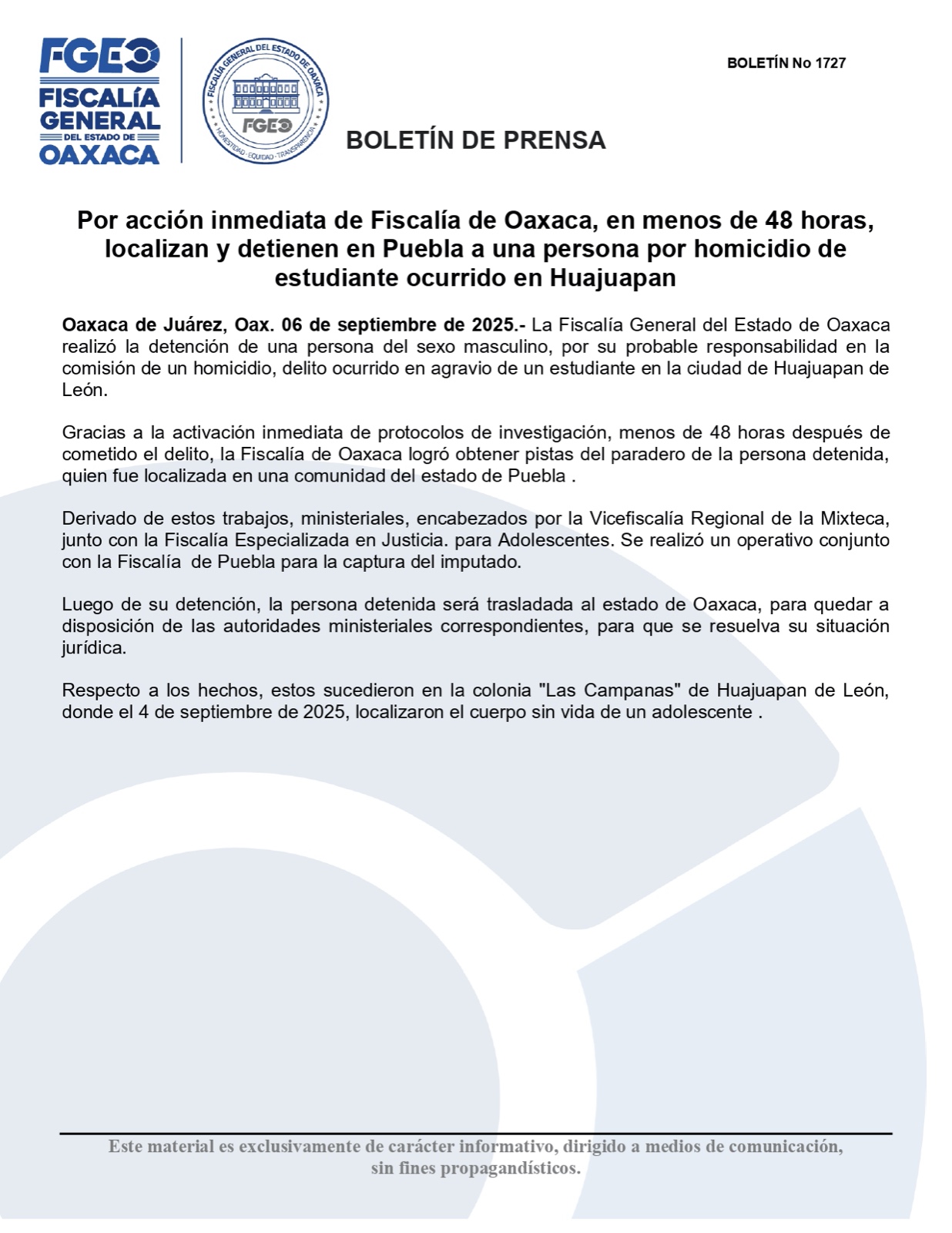 De acuerdo con un comunicado oficial emitido por la Fiscalía General del Estado de Oaxaca, la captura del individuo se logró gracias a la activación inmediata de los protocolos de investigación, lo que permitió obtener pistas sobre su paradero en menos de 48 horas después del hallazgo del cuerpo.