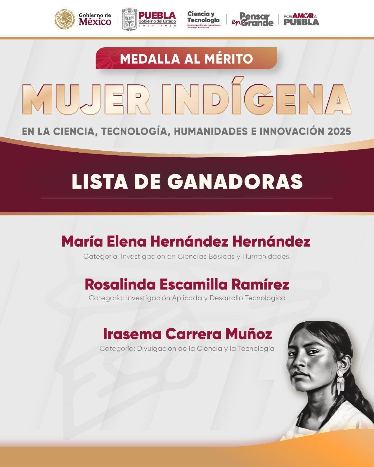 ACATLÁN DE OSORIO, Pue.-La docente Rosalinda Escamilla Ramírez, integrante del Tecnológico Nacional de México (TECNM), campus Acatlán de Osorio, fue distinguida con la Medalla al Mérito Mujer Indígena en la Ciencia, Tecnología, Humanidades e Innovación 2025, dentro de la categoría de Investigación Aplicada y Desarrollo Tecnológico.