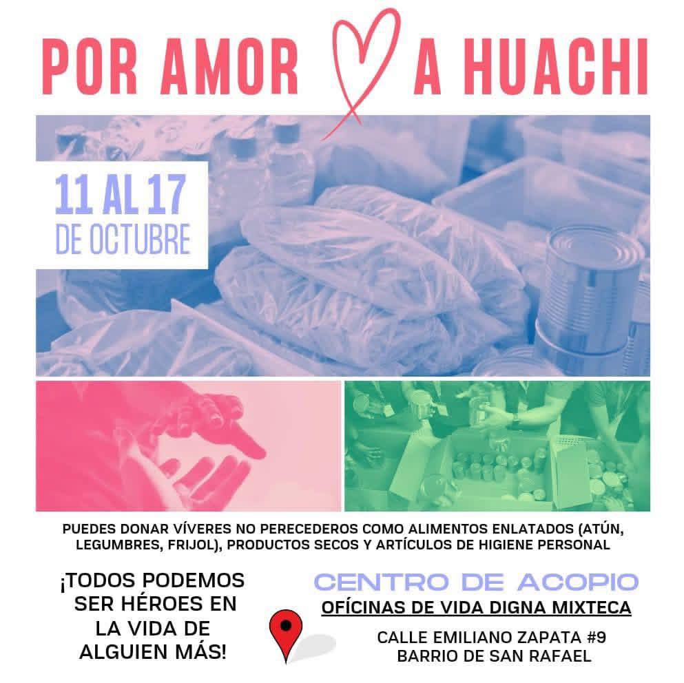 Por su parte, la asociación civil Vida Digna Mixteca también instaló un centro de acopio en sus oficinas, ubicadas en calle Emiliano Zapata número 9, barrio de San Rafael, en Acatlán de Osorio. Este espacio estará recibiendo donaciones del 11 al 17 de octubre, principalmente destinadas a los habitantes del municipio de Huauchinango.
